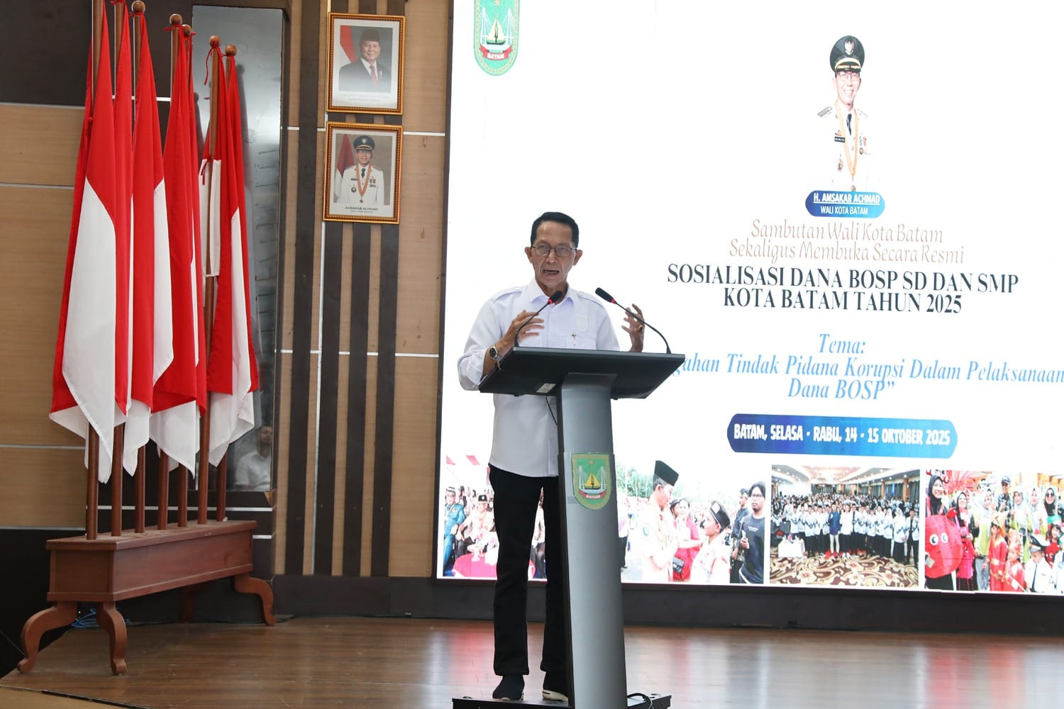 MeutiaraNews.co – Wali Kota Batam, Amsakar Achmad, secara resmi membuka kegiatan Sosialisasi Dana Bantuan Operasional Satuan Pendidikan (BOSP) SD dan SMP Kota Batam Tahun 2025, yang digelar di Kantor Wali Kota Batam, Rabu (15/10/2025).