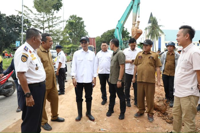 MeutiaraNews.co – Wali Kota Batam Amsakar Achmad meninjau langsung pengerjaan box culvert dan peningkatan jalan di Simpang Helm, Jalan Raja Isa, Batam Center, Senin (13/10/2025).