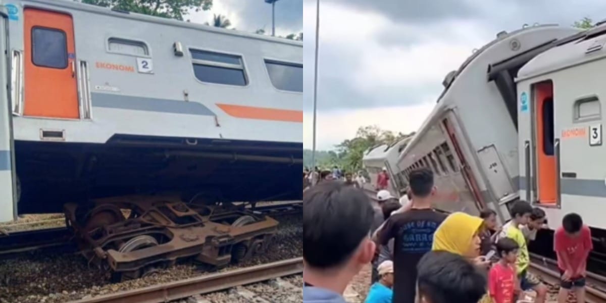 Dalam unggahan Instagram @undercover.id pada hari yang sama, sebuah video memperlihatkan kondisi rangkaian kereta yang keluar dari jalur rel di area Stasiun Bumiayu.