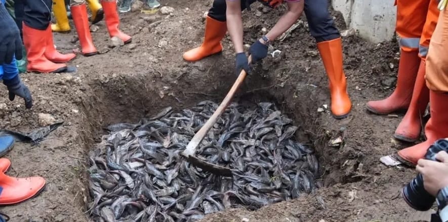 Penanganan selanjutnya, ikan sapu-sapu tersebut dibelah dan dikubur di beberapa titik di dekat pintu-pintu air.