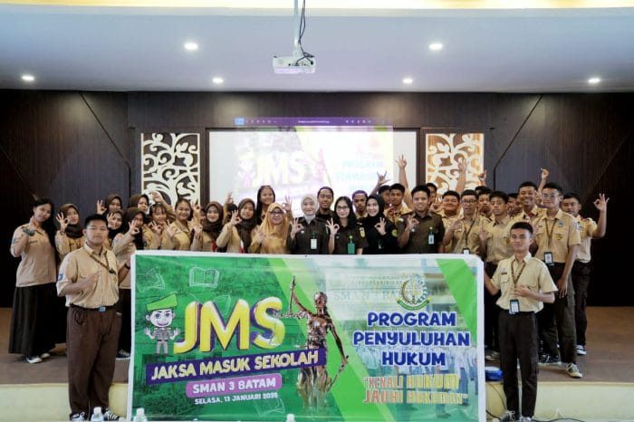 Pesan tersebut disampaikan dalam kegiatan Penyuluhan Hukum melalui Program Jaksa Masuk Sekolah (JMS) yang digelar di SMAN 3 Batam, Selasa (13/1/2026).