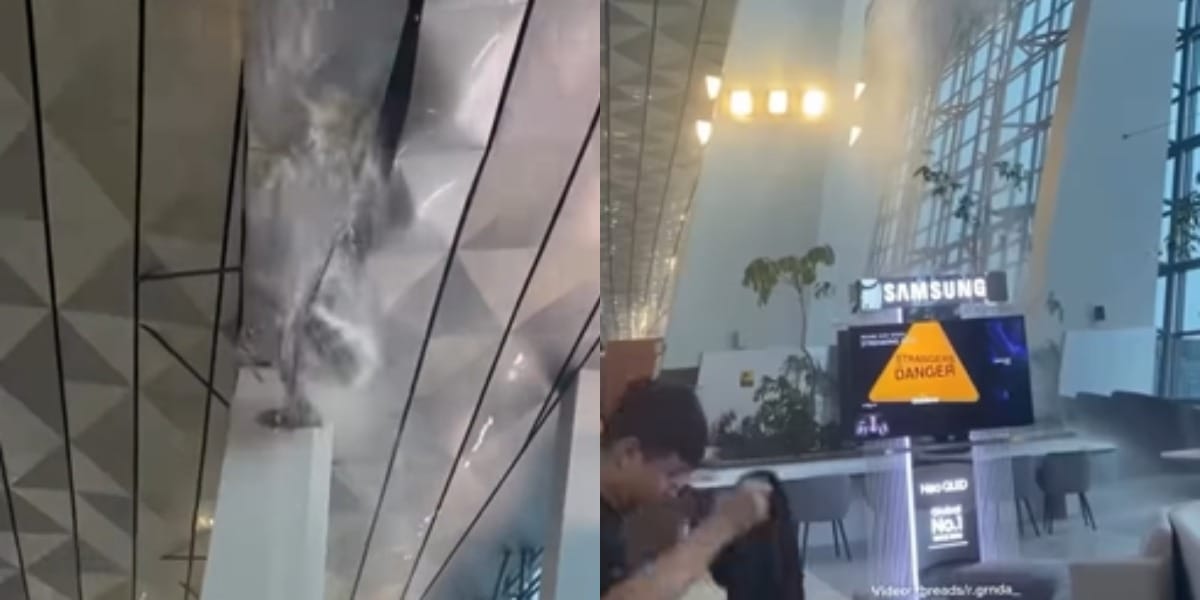 Air Mengucur Deras dari PlafonPada postingan yang sama, dilaporkan insiden bermula saat salah seorang pengunjung yang mendapati area di sekitar bandara yang basah akibat guyuran hujan.