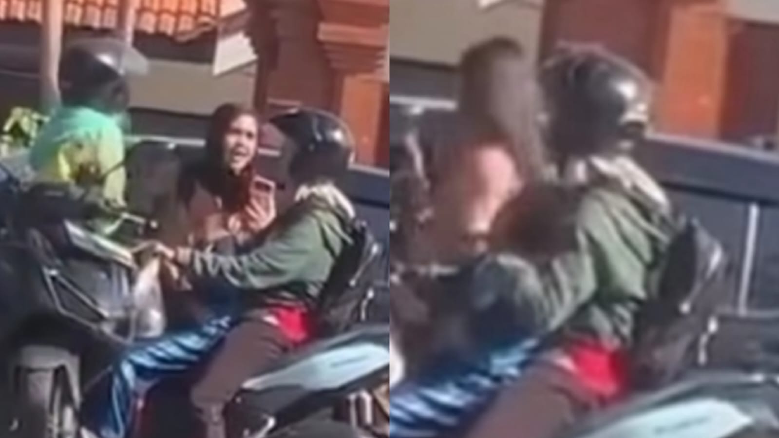 Video viral yang diunggah di berbagai platform media sosial itu juga memperlihatkan momen satu driver ojek online yang ikut kena semprot karena mencoba menengahi.