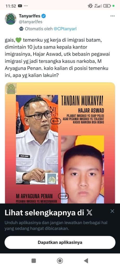 Untuk poin pertama, terkait informasi dugaan adanya tindak pidana narkotika yang disebutkan melibatkan pegawai Kantor Imigrasi Batam.