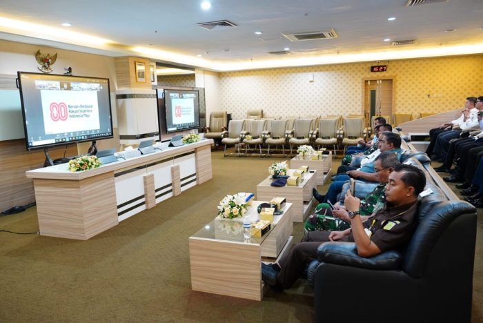 Wali Kota Batam, Amsakar Achmad diwakili Sekretaris Daerah Kota Batam Jefridin dan anggota Forkopimda Kota Batam mengikuti acara peluncuran tema dan logo HUT Kemerdekaan ke-80 RI di Ruang Presentasi Lantai V Kantor Wali Kota Batam secara virtual.