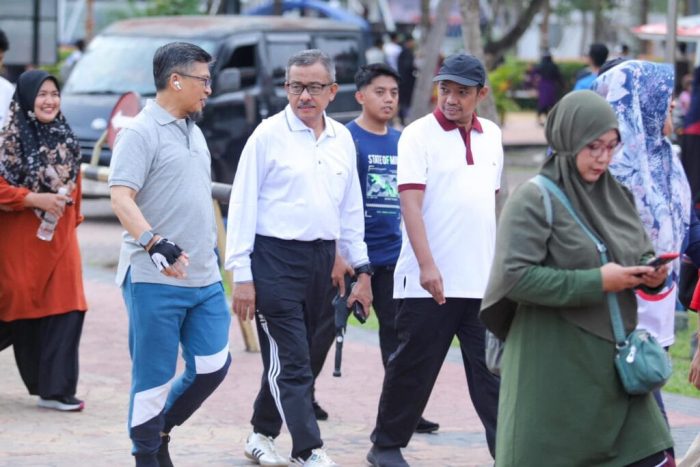 MeutiaraNews.co – Sekretaris Daerah Kota Batam, Jefridin ikut serta dalam kegiatan jalan santai bersama KH Abdullah Gymnastiar atau yang akrab disapa Aa Gym, dan para santri Yayasan Daarut Tauhiid Batam di Dataran Alun-Alun Engku Putri, Minggu (26/1/2025).