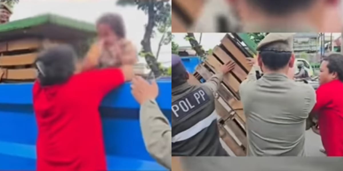 Dalam video yang beredar, ketegangan mulai meningkat ketika petugas berupaya mengangkut barang dagangan milik salah satu pedagang buah yang menolak ditertibkan.